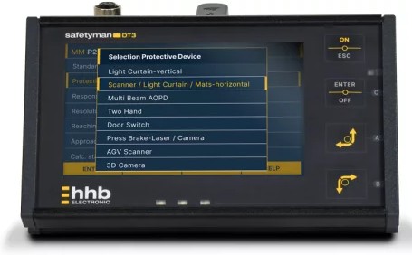 Przenośny i nowoczesny. Nasz dobiegometr szybko określa drogę hamowania i czas zatrzymania na wszelkiego rodzaju maszynach. Podczas pomiaru aktywator (Auto-Hand) automatycznie inicjuje zatrzymanie maszyny poprzez urządzenie ochronne (np. kurtyny świetlne, skanery laserowe, urządzenia sterowania oburęcznego lub wyłączniki osłon blokujących). W ten sposób wszystkie istotne parametry czasu zatrzymania maszyny można zmierzyć szybko i niezawodnie bez żadnych połączeń elektrycznych z maszyną. Wymagana odległość bezpieczeństwa urządzenia ochronnego od punktu zagrożenia jest obliczana automatycznie zgodnie z normami międzynarodowymi.